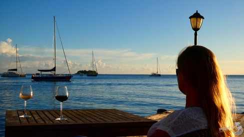 La première chose qui frappe lorsqu’on pénètre dans le lagon, c’est que l’île paraît peu habitée. Très peu de constructions sont visibles depuis la mer. Une surprise plutôt positive quand on sait que l’île est le centre touristique le plus développé de Polynésie ! Quelques centaines de mètres plus au Nord de la passe, on aperçoit facilement les corps-morts devant le Bora-Bora Yacht Club, et on peut enfin profiter de l’escale en prenant un verre au bar du club. Que de chemin parcouru depuis notre Yacht Club à Nieuwpoort sur la côte belge… Près de 13.000 Nm plus à l’Ouest, la terrasse en bois et les quelques tables sous les paillottes en feuilles de cocotiers figent cet instant comme un véritable cliché paradisiaque ! Que faut-il de plus ?!